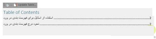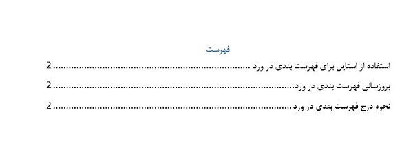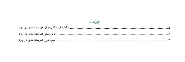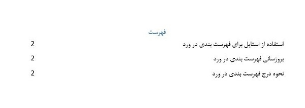 بعد فهرست شما به صورت زیر به فایل وردتان اضافه خواهد شد