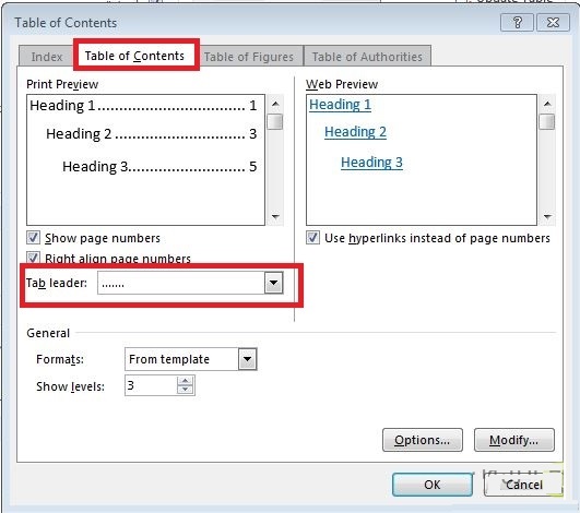 Tab leader کلیک کنید و یکی از گزینه ها را به دلخواه خود انتخاب کنید
