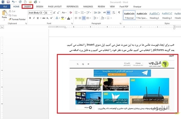 برای ایجاد فهرست عکس ها در ورد به این صورت عمل می کنیم. اول منوی