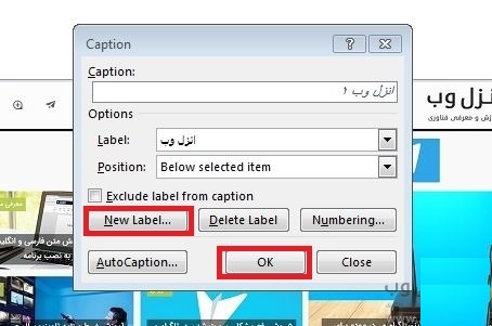 New Label کلیک کنید. عبارتی که می خواهید زیر عکس به شما نمایش داده شود را تایپ کنید و