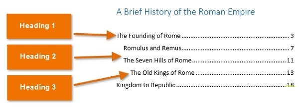 بعد از اینکه متن خود را تایپ کردید باید به سرتیترهای خود (و البته تیترهای داخلی تر آن) استایل دهید. اگر اینکار را انجام ندهید فهرست بندی خودکار برای شما کار نخواهد کرد. شما می توانید خودتان یک استایل بسازید و یا از استایل های آماده خود ورد استفاده کنید. یک راه دیگر هم وجود دارد که بسیار زمان بر است و آن این است که سر تیترها را انتخاب کنید و در قسمت فونت اندازه سرتیترها را بیشتر از متن عادی قرار دهید