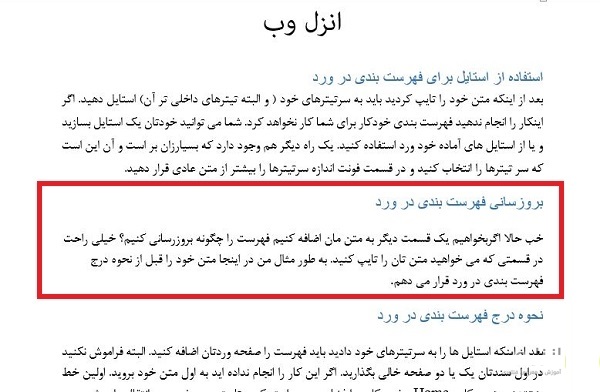 نحوه اضافه کردن سطوح به فهرست بندی ورد