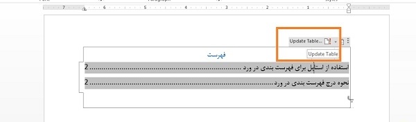 فهرست در فایل ورد شما درج می شود. باز هم در اینجا باید جدول را انتخاب کنید و گزینه