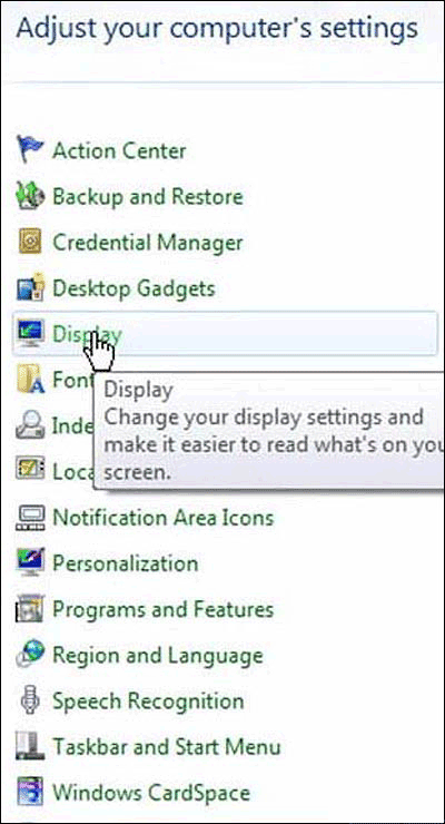 همانطور كه ميبينيد اكنون در All Control panel قرار داريد كه با كليك روي فلش كنار Control panel نيز ميتوانستيد به همين پنجره وارد شويد فرض كنيد ميخواهيد Screen server را تغيير دهيد همانطور كه ميبينيد گزينه مربوط به اين كار در اين پنجره ديده نميشود با توجه به تنظيمات نسخههاي قبلي ويندوز ميدانيد كه اين تنظيم مربوط به بخش Display ميباشد روي گزينه Display كليك كنيد تا پنجره مربوطه نمايان گردد.