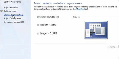 اما همانطور كه ميبينيد در سمت چپ اين پنجره نيز گزينه مربوط به Screen server ديده نميشود روي Change display setting كليك كنيد