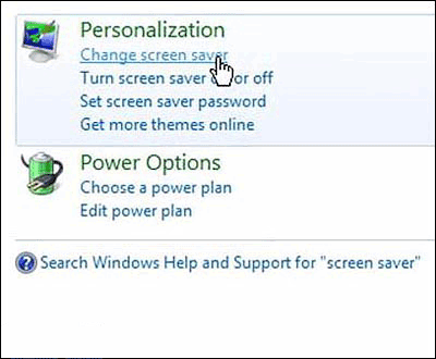 حال در بخش Search عبارت Screen server را وارد كنيد گزينه مورد نظر ما در بخش Personalization قابل دسترسي است با كليك روي گزينه اول پنجره مربوطه باز ميشود