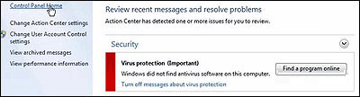 با كليك روي Back به Control panel بازگرديد قابل ذكر است در هر پنجرهاي كه باشيد با كليك روي پيوند Control panel Home نيز ميتوانيد به صفحه اصلي Control panel باز گرديد