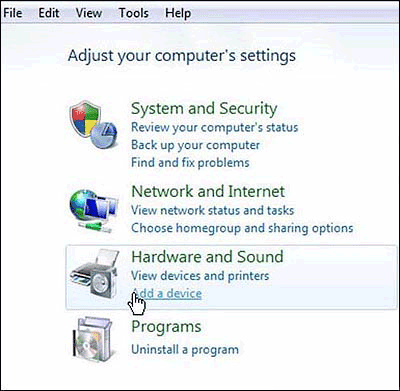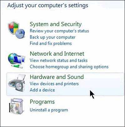 در پنجره اصلي گروههاي مختلفي از مواردي كه ميتوانيد آنها را تنظيم و كنترل كنيد مشاهده ميكنيد گروههايي از قبيل System and Security ، Network and internet ، Hardware and sound ، Programs و غيره هريك از اين گروهها نيز خود شامل زيرگروههايي هستند كه به رنگ آبي نمايش داده شدهاند.