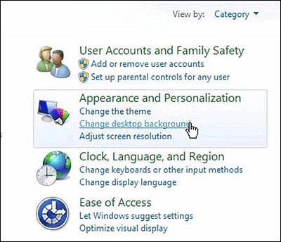 با كليك روي هر كدام از اين گزينهها مستقيما وارد هريك از اين پنجرهها خواهيد شد و ميتوانيد تنظيمات مربوط به آن مورد را انجام دهيد به عنوان مثال فرض كنيد ميخواهيد تصوير پسزمينه دسكتاپ را تغيير دهيد براي اين كار در زير مجموعههاي گزينه Appearance and personalization وارد گزينه Change desktop background شويد.