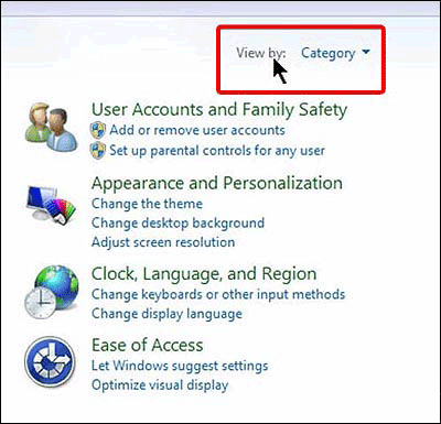 حال در بخش View by مجددا Category را انتخاب كنيد