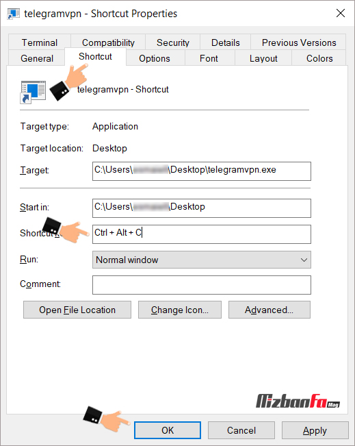 ctrl+alt و کلید انتخابی شما به عنوان کلیدهای میانبر برای اجرای این برنامه در نظر گرفته می شود