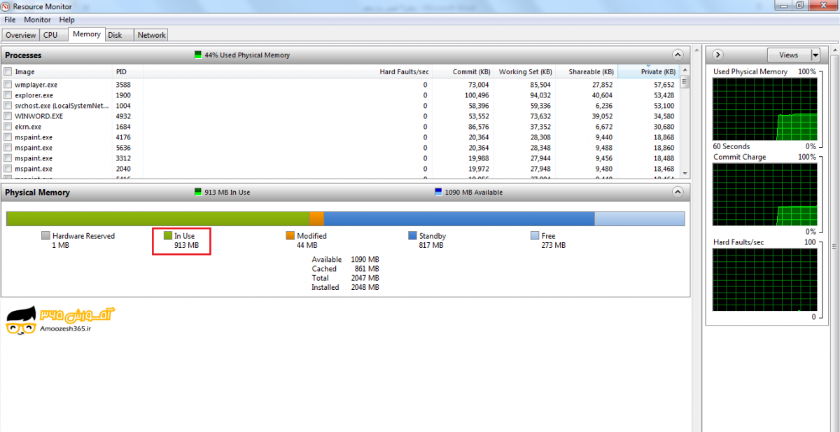 : Free این مقدار همیشه کم است! ویندوز بررسی میکند که شما از چه فایل هایی بیشتر استفاده میکنید و آنها را به رم میفرستد تا سریع تر باز شوند و به حالت Standby در میایند.