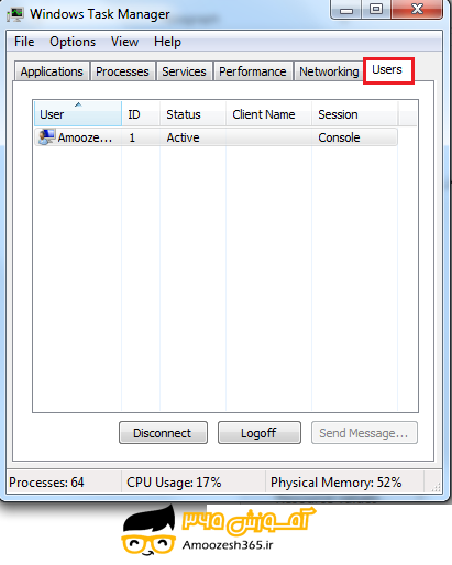 برای ویندوز می توان چندین کاربر مستقل تعریف کرد که هر کدام از آنها دارای حساب کاربری خود هستند. در این حالت ممکن است دو کاربر به طور همزمان فعال باشند و این به معنی عدم خروج یکی از آنها پس از اتمام کار خود است. ضمن اینکه این احتمال هم وجود دارد که یک کاربر به صورت ریموت به ویندوز متصل باشد. از طریق بخش کاربران این موارد قابل مشاهده و کنترل هستند
