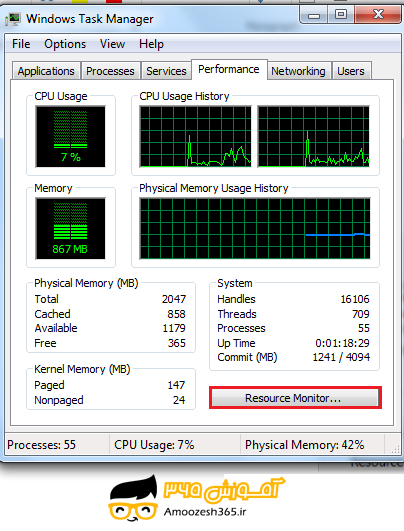 حال اگر در این صفحه بر روی گزینه لینک دار Resource Monitor کلیک چپ کنیم.