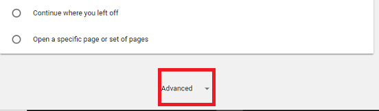 ۴- اکنون در قسمت انتهایی صفحه روی Advanced کلیک کنید.