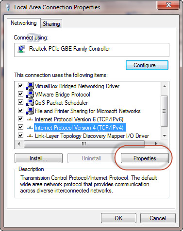 از صفحه باز شده گزینه Internet Protocol Vertion 4 را انتخاب و بر روی دکمه Properties کلیک کنید.
