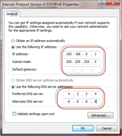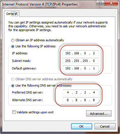 در این صفحه با انتخاب گزینه Use The Following IP Address میتوانید به صورت دستی آی پی را وارد کنید.