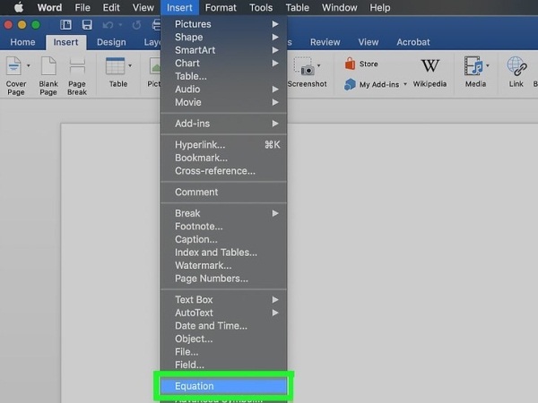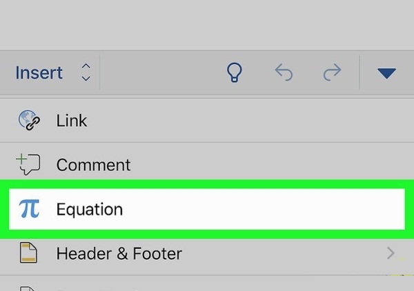 همچنین می توانید از منوی Insert گزینه Equation را انتخاب کنید.