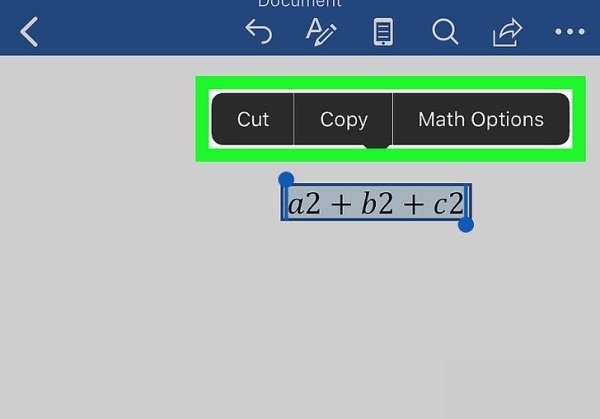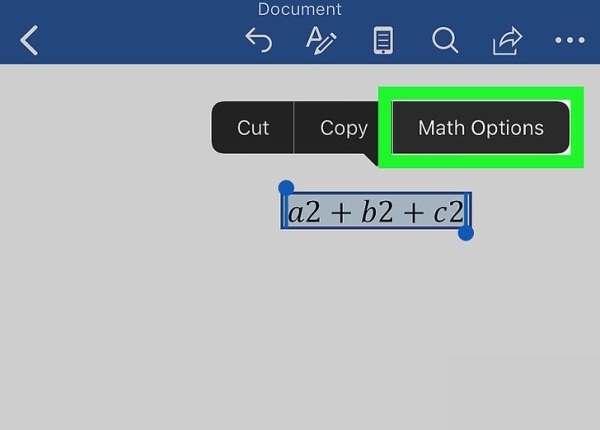 با ظاهر شدن گزینه ها روی Math Options تپ کنید.