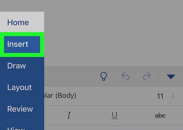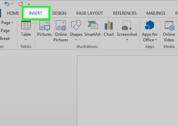 جهت فرمول نویسی در ورد، ابتدا تب Insert را انتخاب کنید.