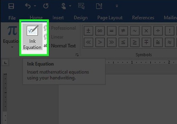 از نسخه ۲۰۱۶ به بعد قابلیت جدیدی به ورد و قسمت فرمول نویسی اضافه شد. این ویژگی می تواند دستخط شما را شناسایی کرده و آن را به عنوان فرمول بنویسد (تبدیل عکس به فرمول ورد). به اینصورت می توان سرعت فرمول نویسی را افزایش داد. برای استفاده از این روش برای نوشتن فرمولهای ریاضی در Word به تب Insert بروید و روی آیکن منوی کشویی Equation کلیک کنید. سپس گزینه Ink Equation را انتخاب کنید.
