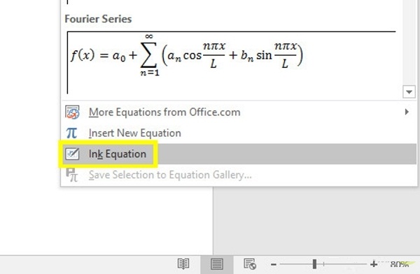 قابل ذکر است در صورت استفاده از ورد ۲۰۱۶ و جدید تر، با کلیک روی Ink Equation می توانید فرمول خود را نوشته تا ورد آن را به متن تبدیل کند.