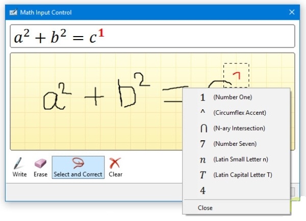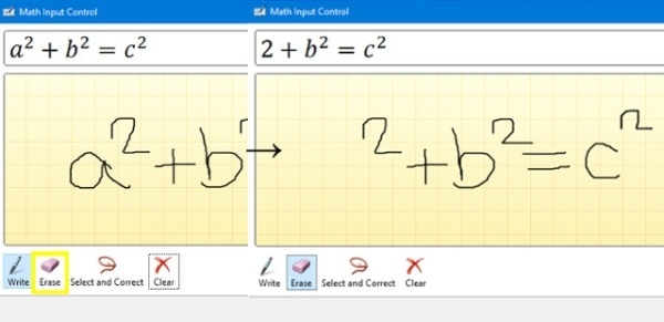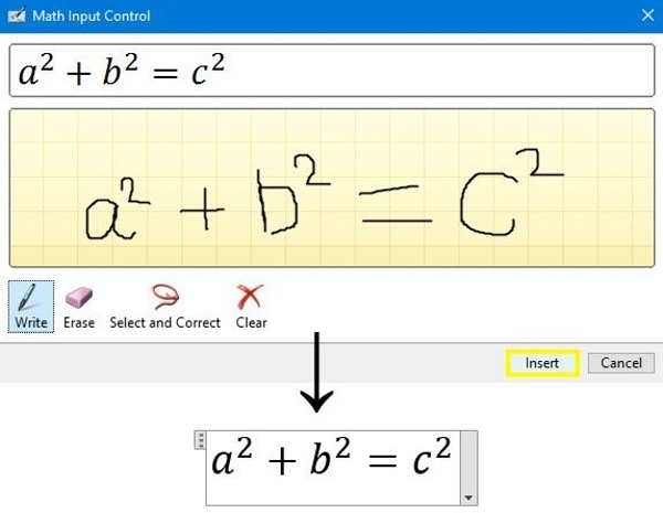 اگر در نوشتن معادله دچار اشتباه شدید، با کلیک روی ابزار Erase می توانید آن قسمت را پاک کنید. از طریق این بخش میتوانید برای نوشتن خط کسر ، علامت انتگرال ، توان در فرمول نویسی ورد و سایر معادلات سخت استفاده کنید.