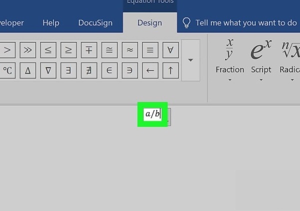 برای نوشتن کسری می توانید از / استفاده کنید. به طور مثال تایپ a/b و سپس فشار دادن دکمه space عبارت a را در بالای b به عنوان کسری قرار می دهد.