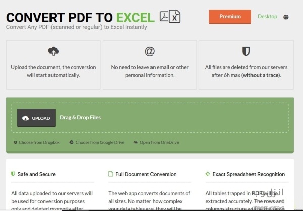 اگر هنوز سرویسی را برای تبدیل PDF به Excel انتخاب نکرده اید، سرویس Convert PDF to Excel می تواند برای شما مناسب باشد. این سرویس به صورت رایگان، بدون نیاز به ثبت نام و.. فرایند تبدیل را انجام می دهد. جهت اطمینان خاطر بیشتر شما از امنیت فایل های آپلود شده، طبق گفته سازنده حداکثر تا ۶ ساعت پس از آپلود فایل، به صورت خودکار از سرور حذف می شود.