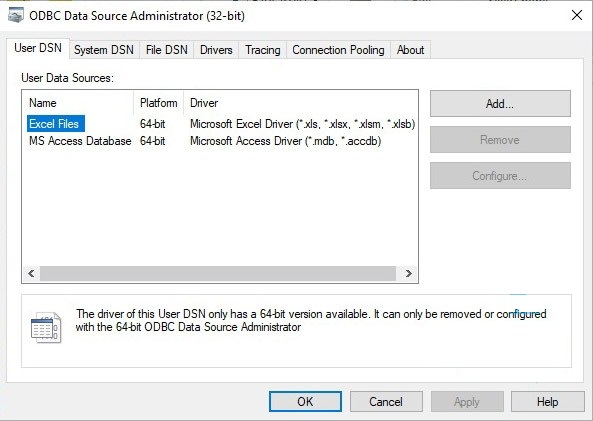 ODBC Data Sources (32-bit) & ODBC Data Sources (64-bit)