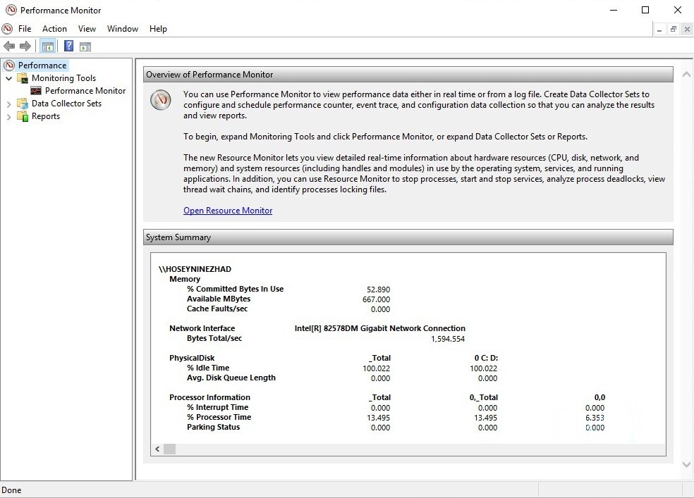 Performance Monitor به معنی نظارت بر کارایی می باشد. در این بخش از ابزار ویندوز شما دسترسی به نحوه ی کارای سخت افزار سیستم خود دارید. می توانید گزارشی از وضعیت عملکرد سیستم خود را مشاهده کنید.