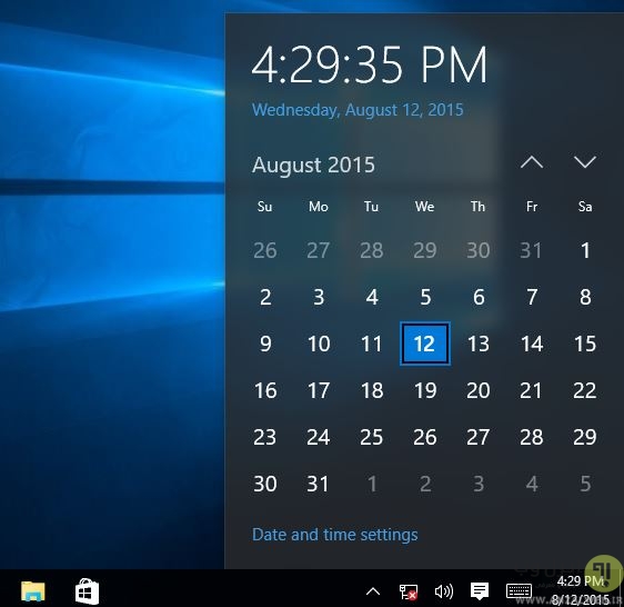 در سمت راست تسکبار ویندوز (Task bar) بر روی ساعت و زمان کلیک و از پنجره باز شده گزینه Date and Time Setting را انتخاب کنید.