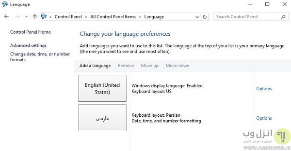 فارسی کردن تقویم،ساعت و کیبورد ویندوز ۱۰