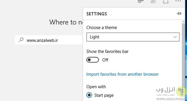 در مرورگر بر روی آیکن سه نقطه کلیک و گزینه Setting را انتخاب کنید و سپس بر روی Import favorites from another browser کلیک کنید.