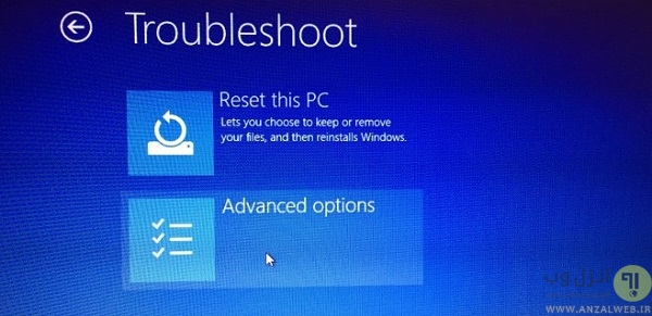 پس از ریستارت شدن سیستم صفحه troubleshoot را مشاهده میکنید که باید بر روی Troubleshoot کلیک کنید.