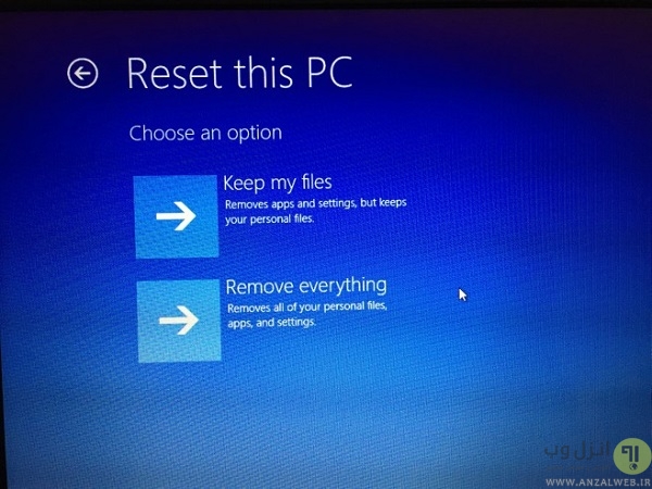 در صفحه بعد بر روی Reset This PC کلیک کنید.درصفحه بعد با کلیک بر روی Keep my files عملیات ریست فکتوری ویندوز ۱۰ شروع خواهد شد و سیستم شما با سریال نامبر فعلی و اکتیو شده مجددا در اختیار شما قرار خواهد گرفت. (با انتخاب Remove Everything همه تنظیمات و برنامه های شما پاک و سپس ویندوز ریست خواهند شد)