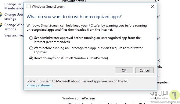 در پنجره باز شده گزینه Don,t do anything را انتخاب و پنجره را OK کنید.حالا اسمارت اسکرین ویندوز ۱۰ خاموش و دیگر پیغام های آزار دهنده نمایش داده نمیشود.