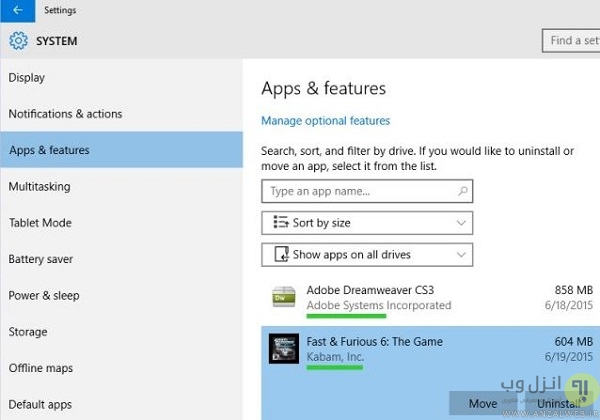 تغییر محل نصب یک برنامه به درایو دیگر در ویندوز ۱۰