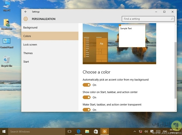تغییر رنگ منو تسک بار  ویندوز ۱۰ و هماهنگی آن با تصویر زمینه شما