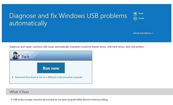 استفاده از Fixit مایکروسافت برای رفع خطای USB Device Not Recognized