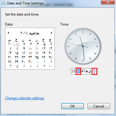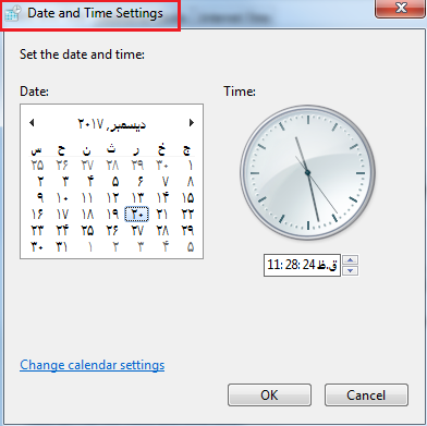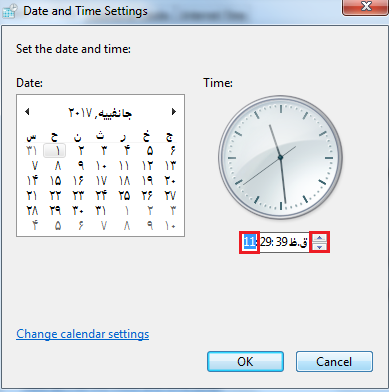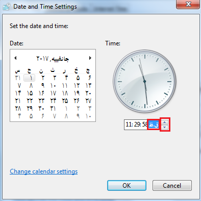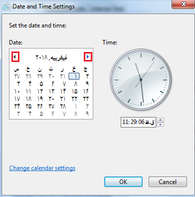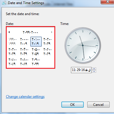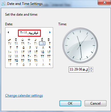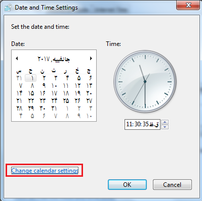 بر روی گزینه لینک دار Change calendar settings کلیک چپ می کنیم.
