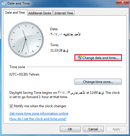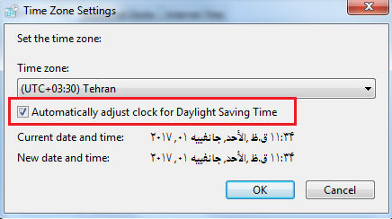 با فعال کردن علامت Automatically adjust clock Daylight Saving Time باعث می شود ساعت کامپیوتر متناسب با تغییرات ساعت کشور تنظیم گردد. در این صورت ساعت سیستم به طورخودکار در ابتدای بهار یک ساعت به جلو و در ابتدای پاییز یک ساعت به عقب بر میگردد.