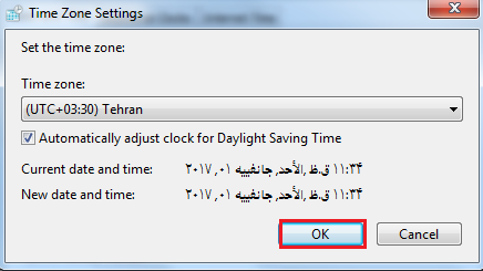 در کادر محاوره ای Date and Time نیز جهت ذخیره تغییرات اعمال شده بر روی دکمه Ok کلیک چپ می کنیم.