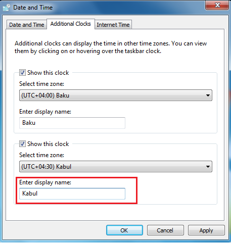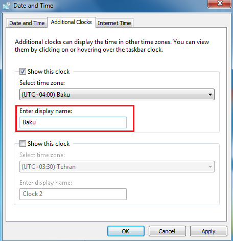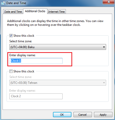 در این سربرگ تیک گزینه Show this clock را فعال می کنیم.