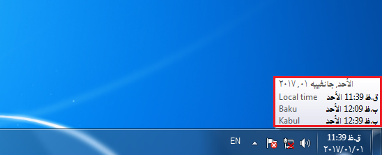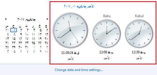با کلیک بر روی ساعت و تاریخ موجود در ناحیه Notification area (اطلاع رسانی)در سمت راست پایین صفحه Desktop ویندوز، می توانیم ساعت های ایجاد شده به وقت کشورهای ایجاد شده را مشاهده کنیم.