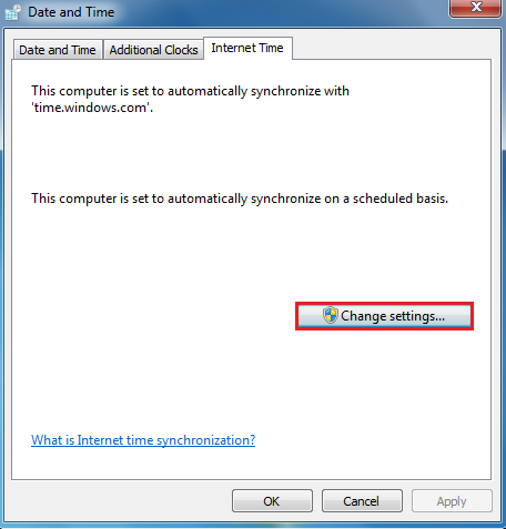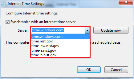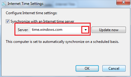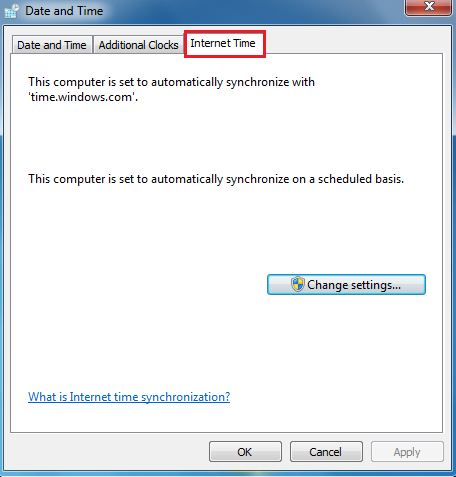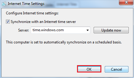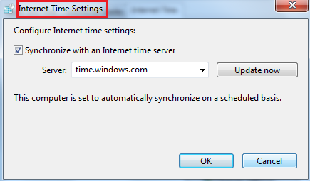 کادر محاوره ای Internet Time Settings ظاهر می گردد.