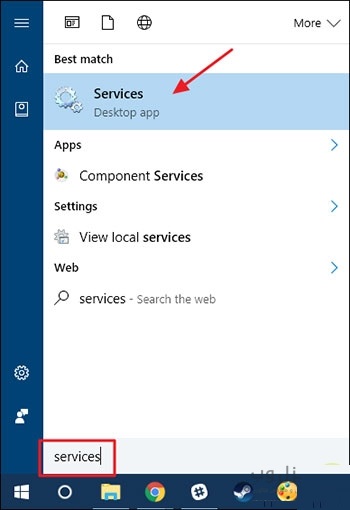برای پاک کردن کش پرینتر ابتدا باید سرویس Print Splooer را غیرفعال کنید. در بخش Start یا جستجو ویندوز کلمه services را تایپ کرده و روی آن کلیک کنید.