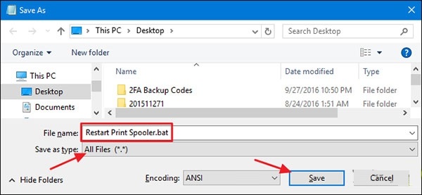 حال از طریق منو file این خطوط را با فرمت .bat ذخیره کنید. در بخشی که باید نام فایل را مشخص کنید فرمت را مطابق با شکل زیر روی *.* قرار دهید. حال اسم دلخواهتان رابا پسوند .bat تایپ کرده و روی Save کلیک کنید.