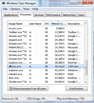 در صورت حل نشدن مشکل، وارد Task Manager ویندوز شوید(ctrl+shift+esc) و در تب Processes گزینه ی dllhost.exe را انتخاب و End Processes را انتخاب کنید.