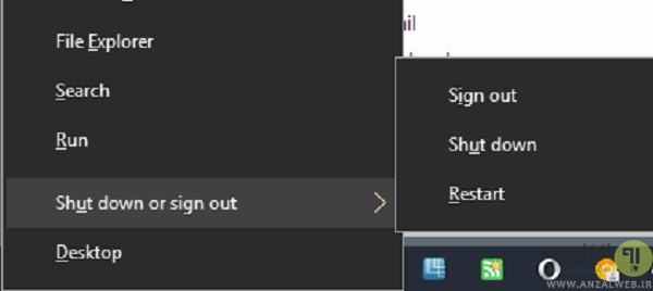خاموش کردن کامپیوتر با صفحه کلید با استفاده از منو Windows-X